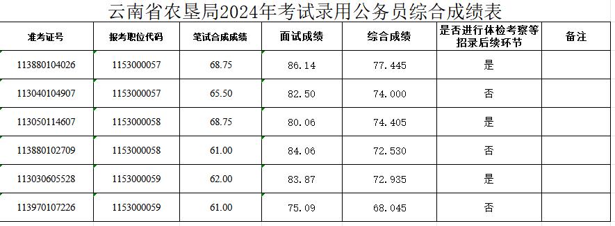 附件:云南省農(nóng)墾局2024年考試錄用公務(wù)員綜合成績(jī)