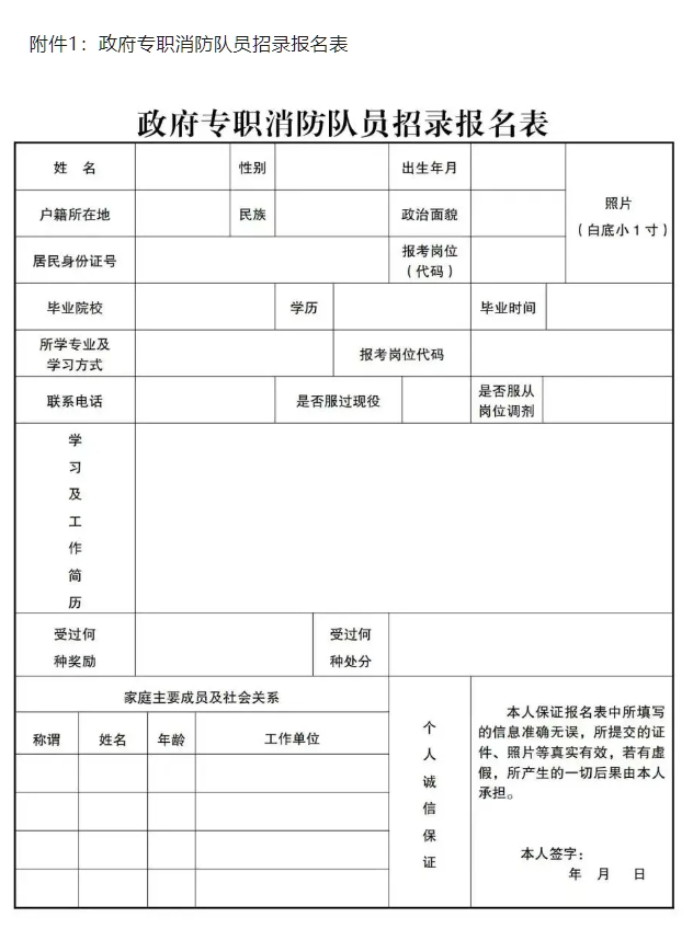 附件1:政府專職消防隊(duì)員招錄報(bào)名表