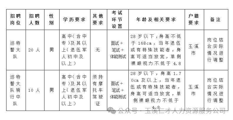 10.在玉溪市公安局紅塔分局工作過的輔警人員離職不滿一年的不得報名參加此次招聘。