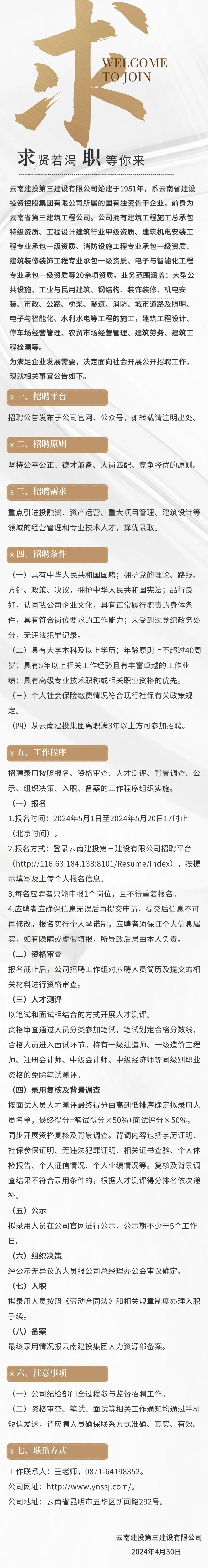 云南建投第三建設(shè)有限公司2024年社會(huì)招聘公告
