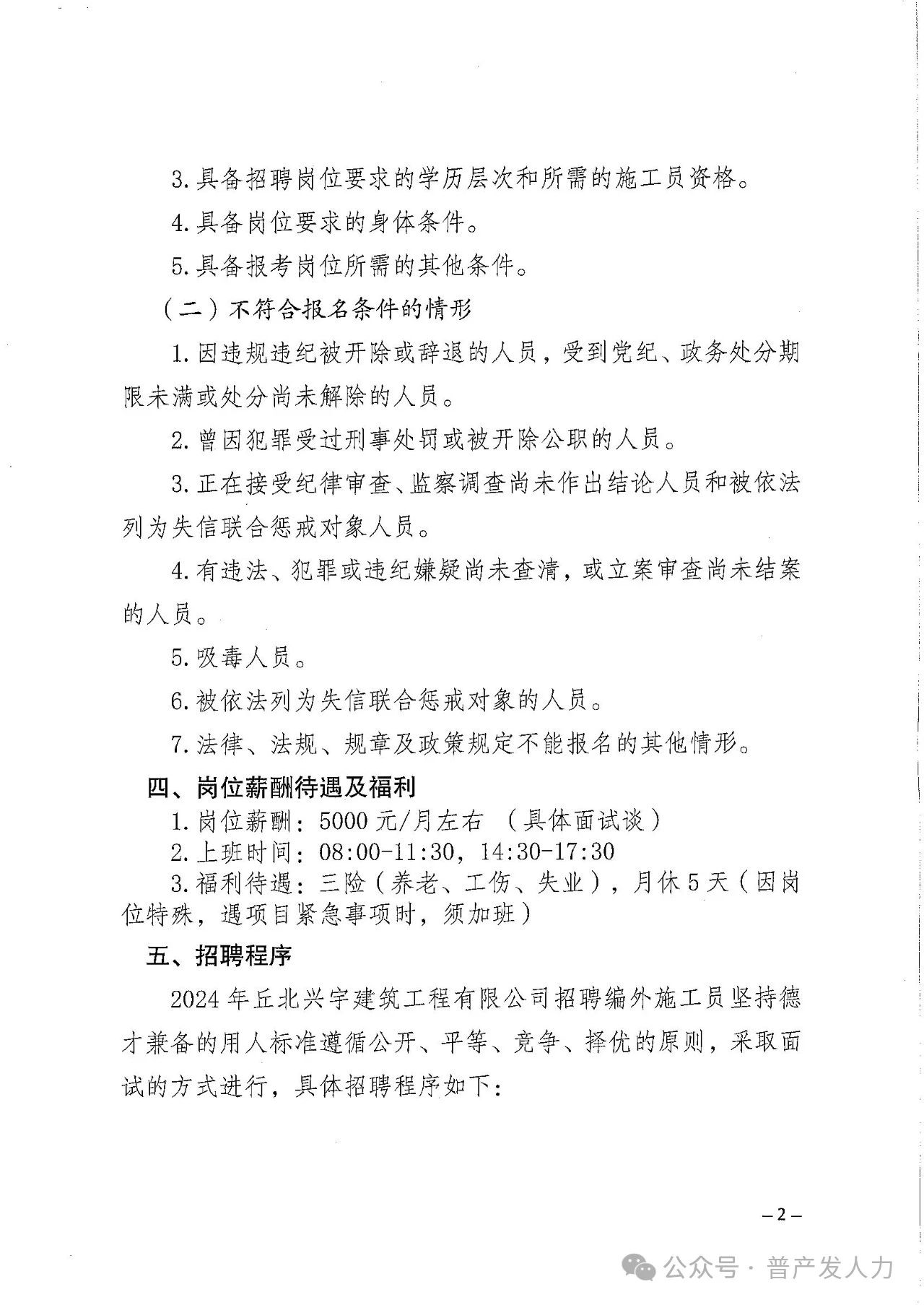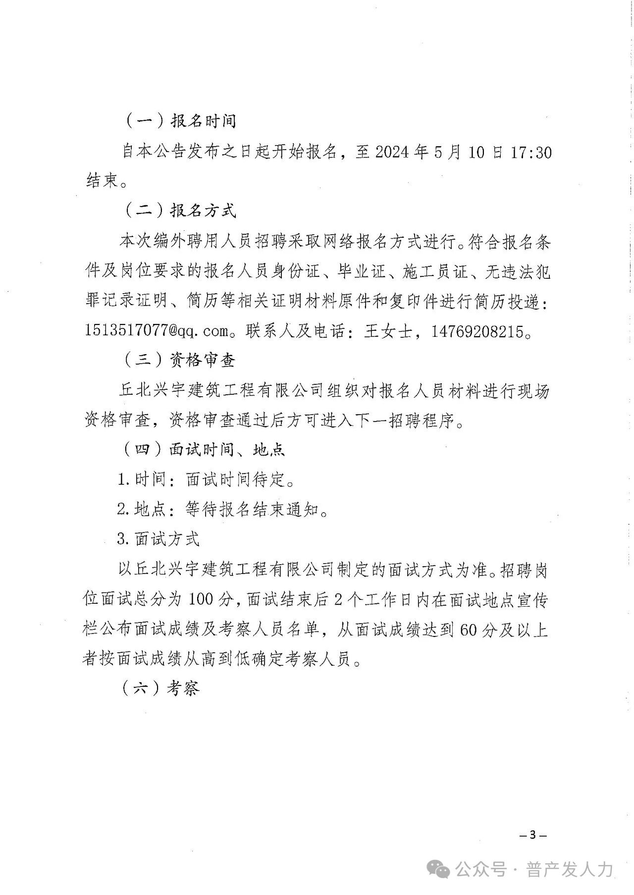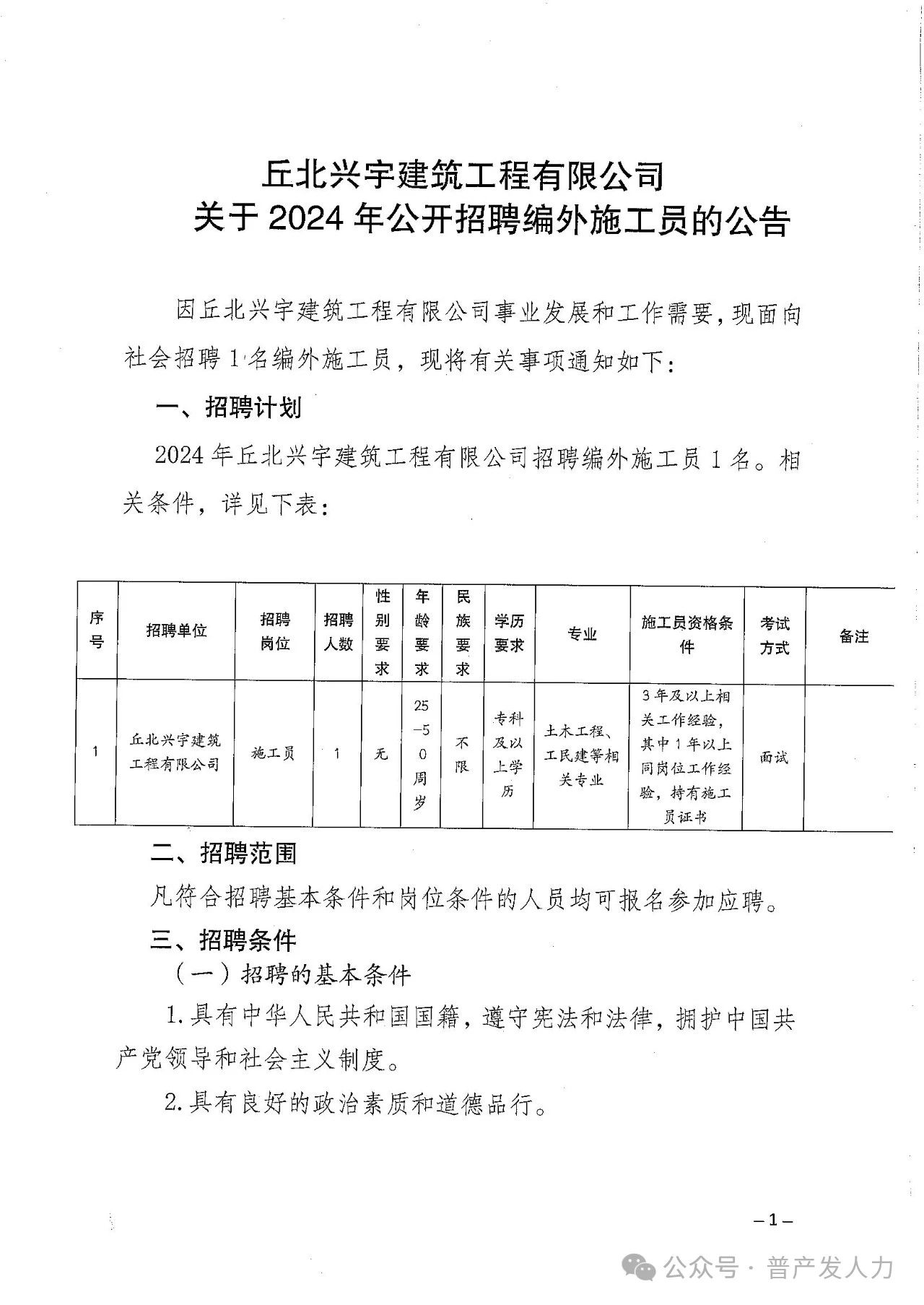 丘北興宇建筑工程有限公司 關于2024年公開招聘編外施工員的公告 來源:https://mp.weixin.qq.com/s/leP8mJhKlbrnuPuP0Pp-IQ