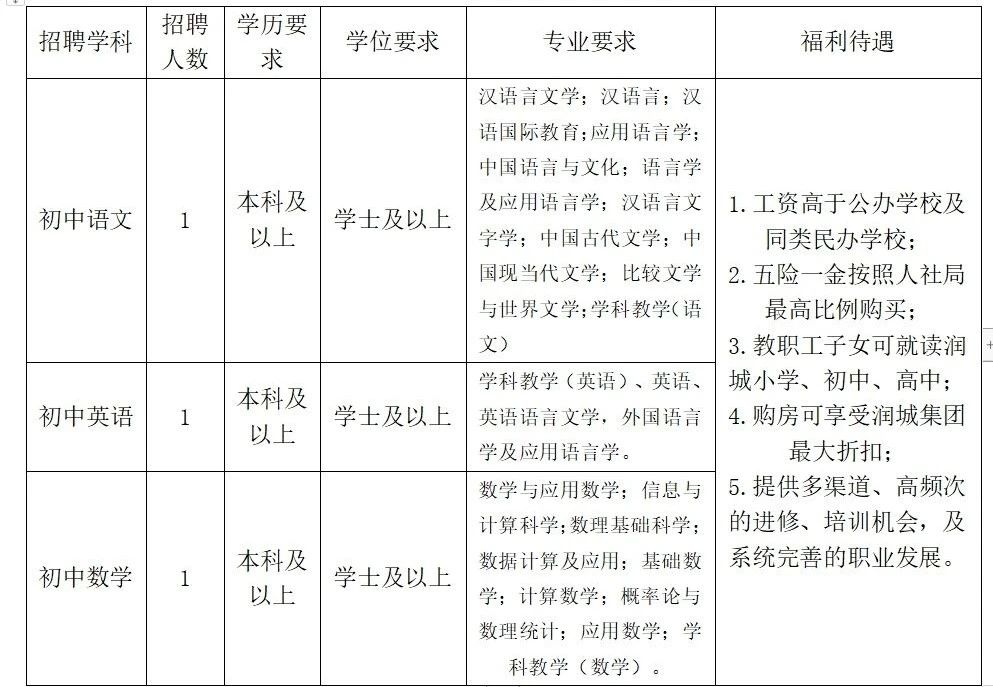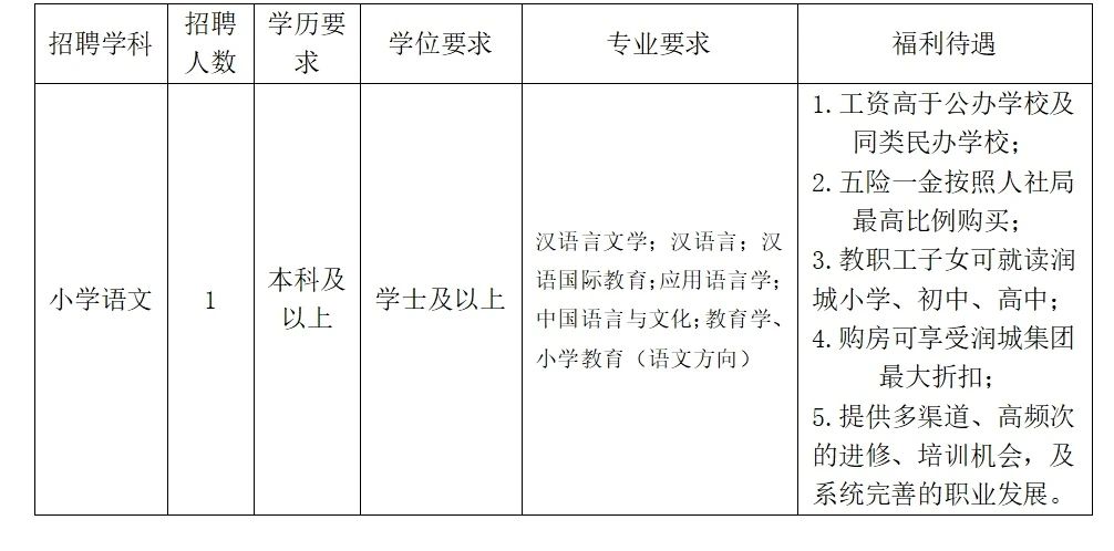 昆明潤城學校2024年春季學期招聘公告
