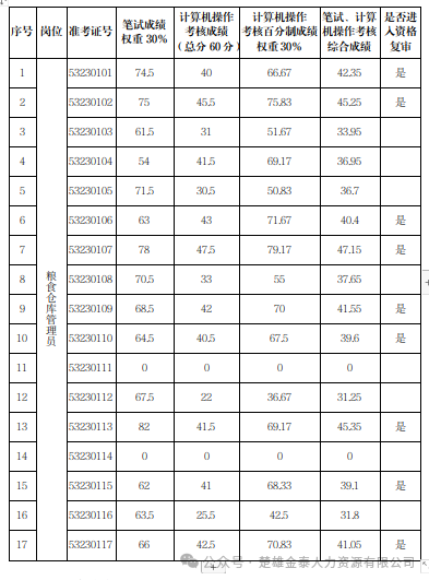 南華縣糧食儲備有限公司2024年公開招聘合同制職工筆試及計算機(jī)操作考核成績公示