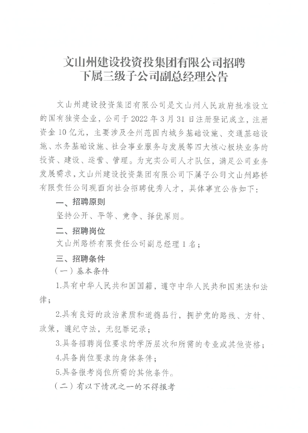 文山州建設(shè)投資投集團(tuán)有限公司招聘下屬三級(jí)子公司副總經(jīng)理公告