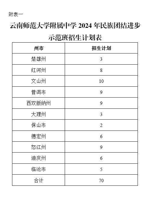 3.云南師范大學(xué)附屬中學(xué)民族團(tuán)結(jié)進(jìn)步示范班(以下簡稱“民族班”)和其他中學(xué)民族團(tuán)結(jié)進(jìn)步示范班不得兼報(bào)。