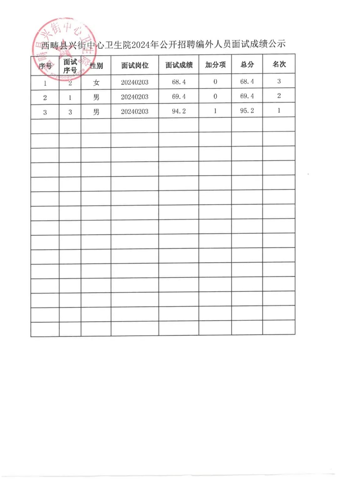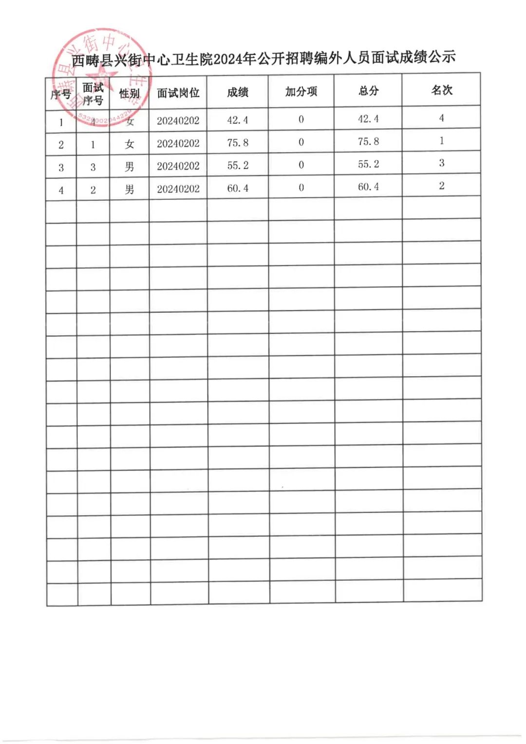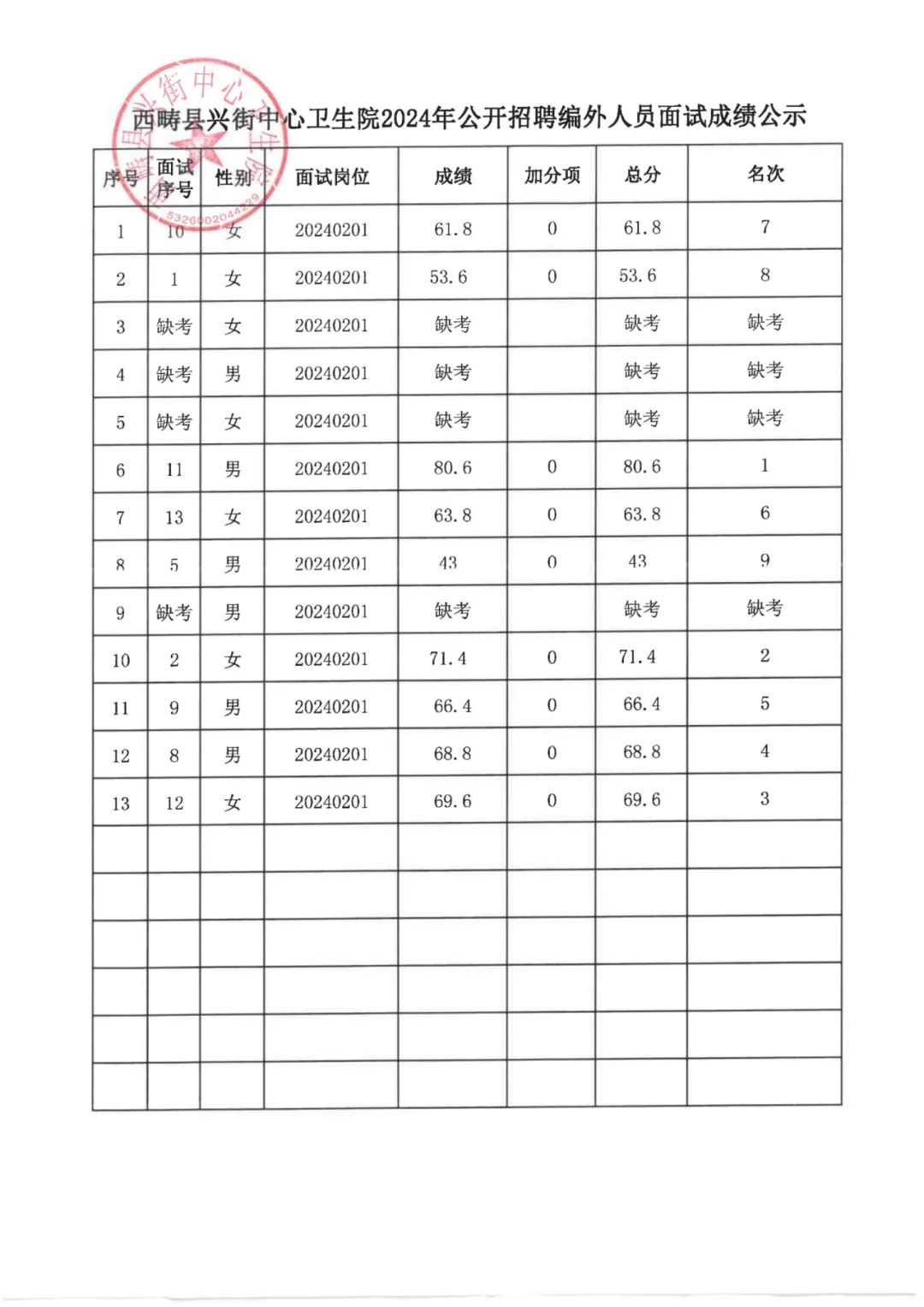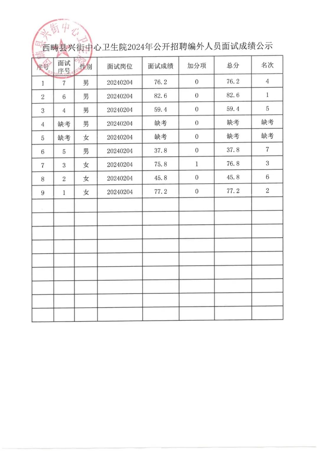 附:西疇縣興街中心衛(wèi)生院2024年公開招聘編外人員面試成績