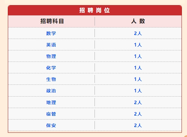 3. 優(yōu)秀骨干教師:第一學(xué)歷為本科及本科以上,具有3年及以上高中專職教師工作經(jīng)驗和1屆以上畢業(yè)班經(jīng)驗,區(qū)級以上各類優(yōu)秀教師、名班主任優(yōu)先聘用。