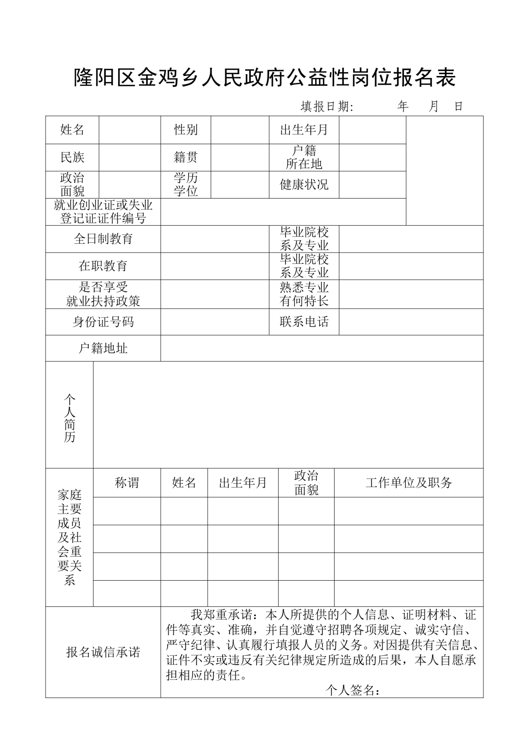 附件:公益性崗位報(bào)名表