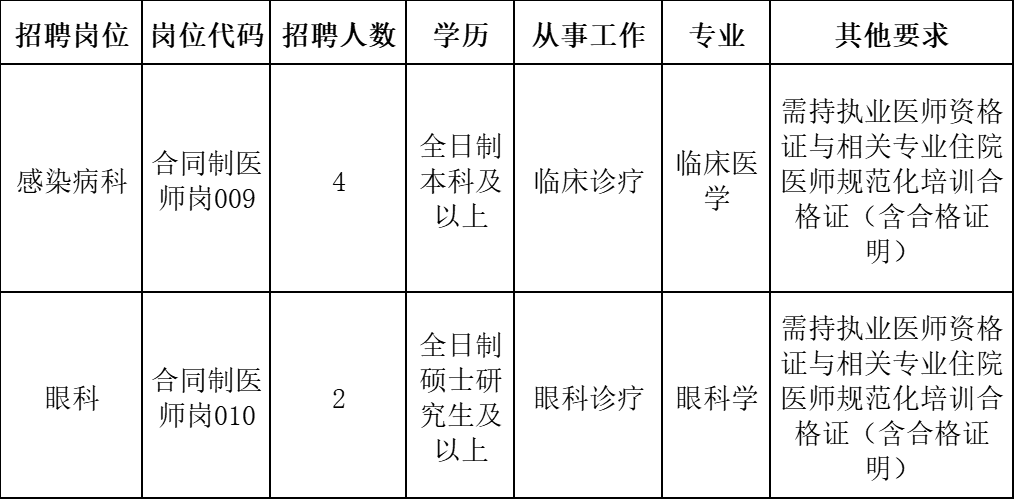 3身體健康,編外人員崗位年齡在18—30歲;合同制醫(yī)師崗位年齡在35歲以下,中級職稱人員可放寬至40歲,年齡計算統(tǒng)一截止時間為2024年5月31日。
