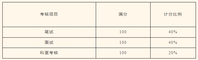 筆試、面試、科室考核采取量化計分方式,按比例計入合成成績。