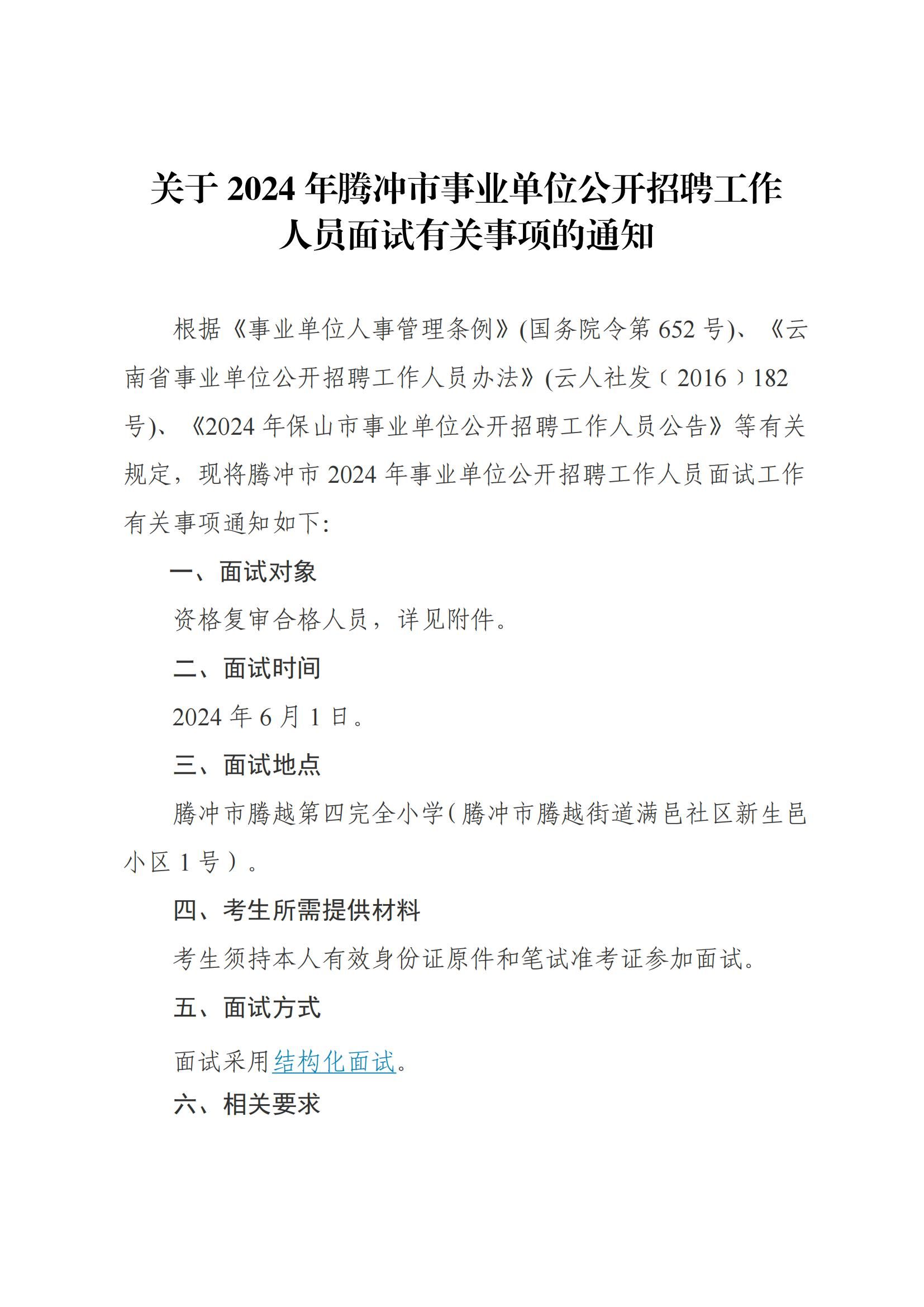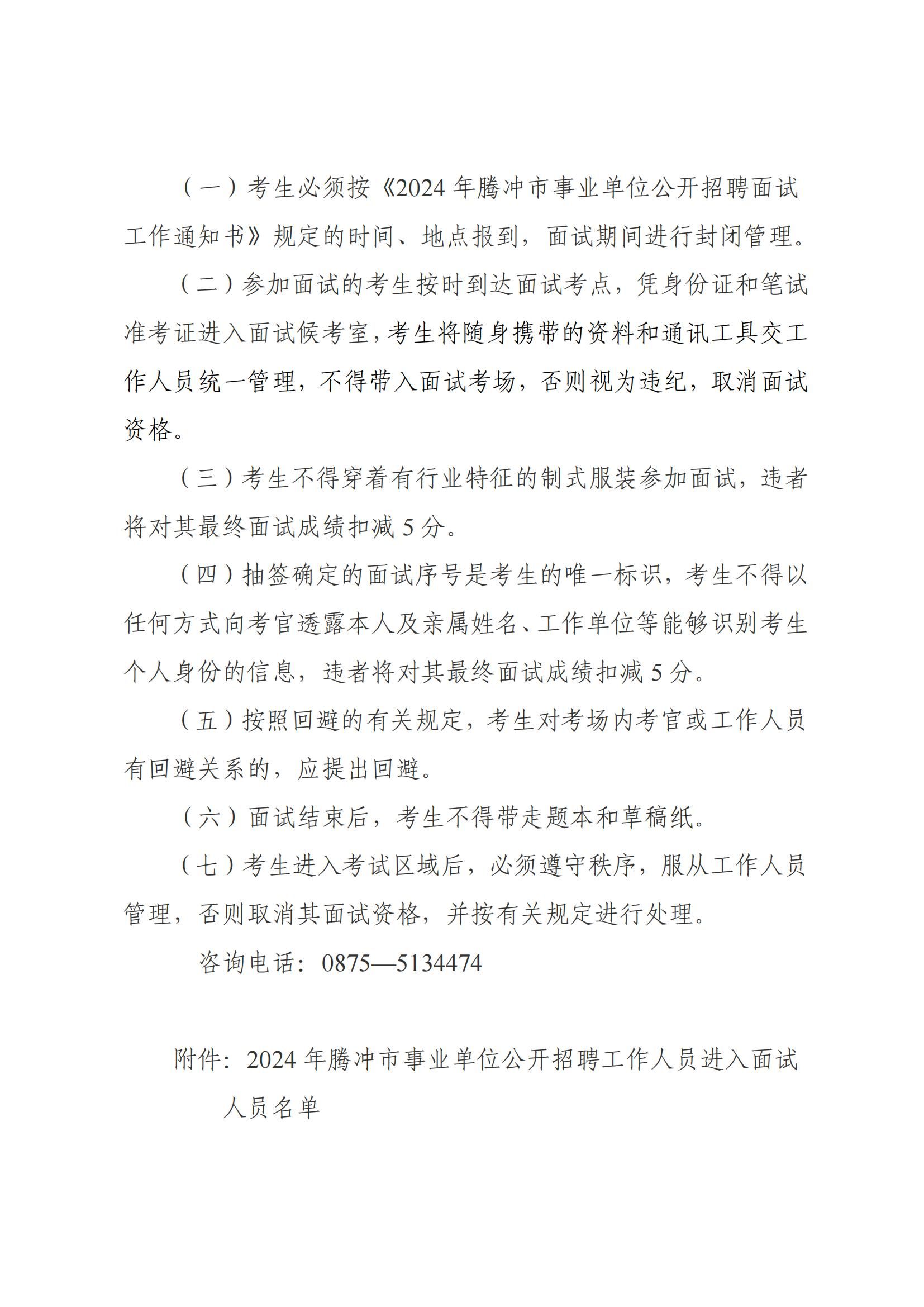 2024年騰沖市事業(yè)單位招聘面試有關事項通知