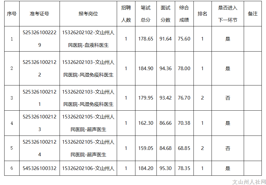 文山州人民醫(yī)院公開招聘工作人員面試和綜合成績公布