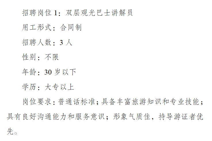 現(xiàn)因業(yè)務(wù)需求,面向社會公開招聘講解員和公交車駕駛員,現(xiàn)將有關(guān)事宜公告如下: