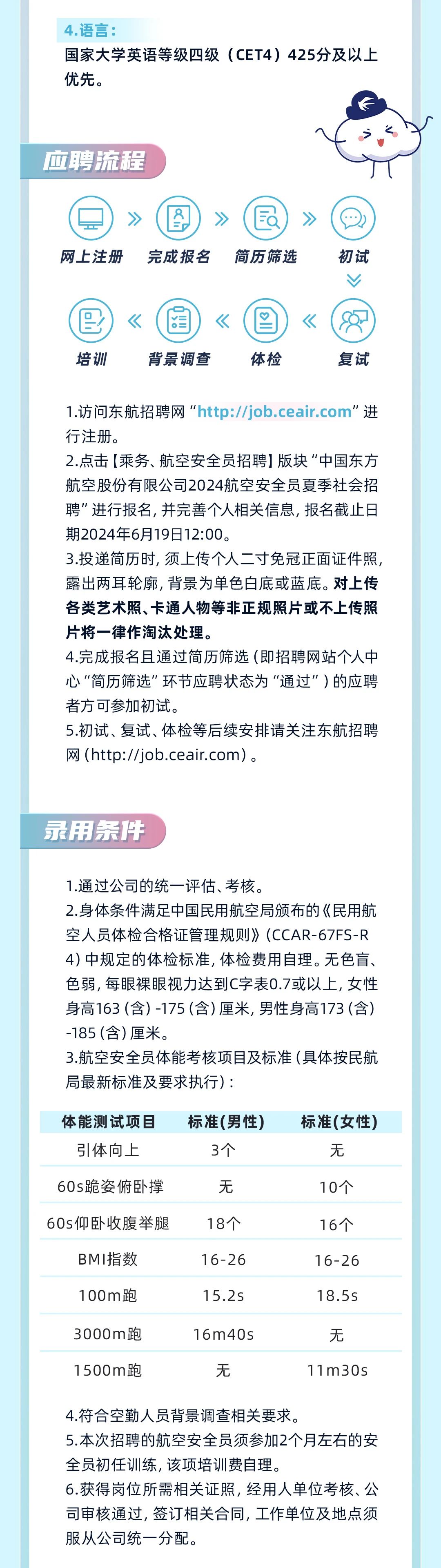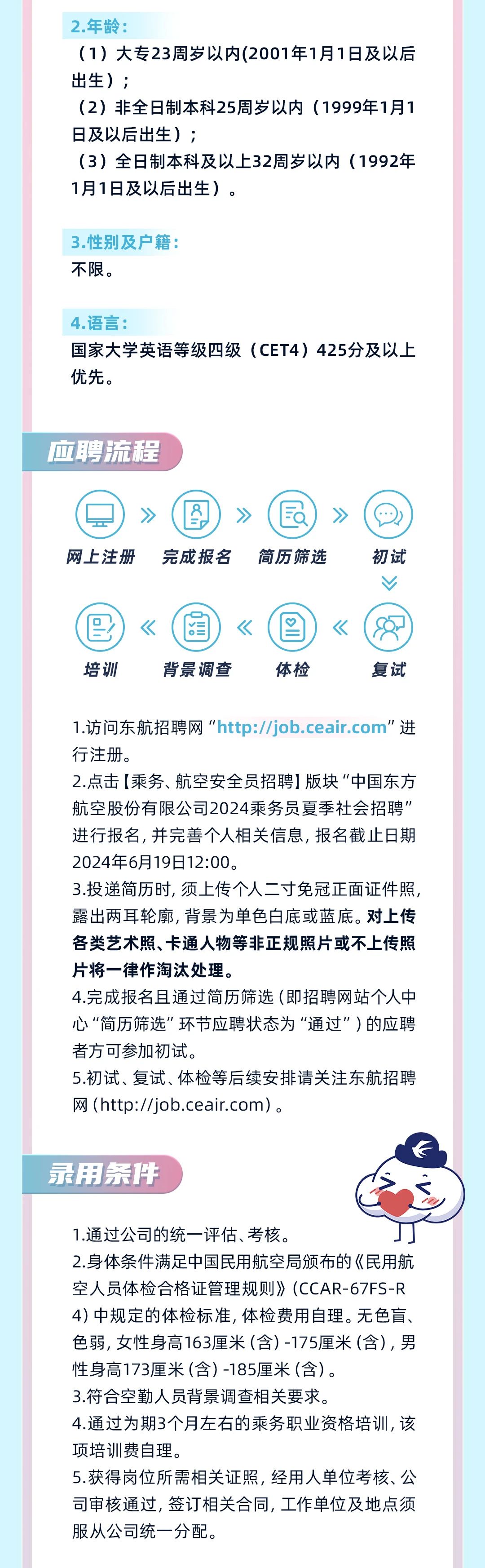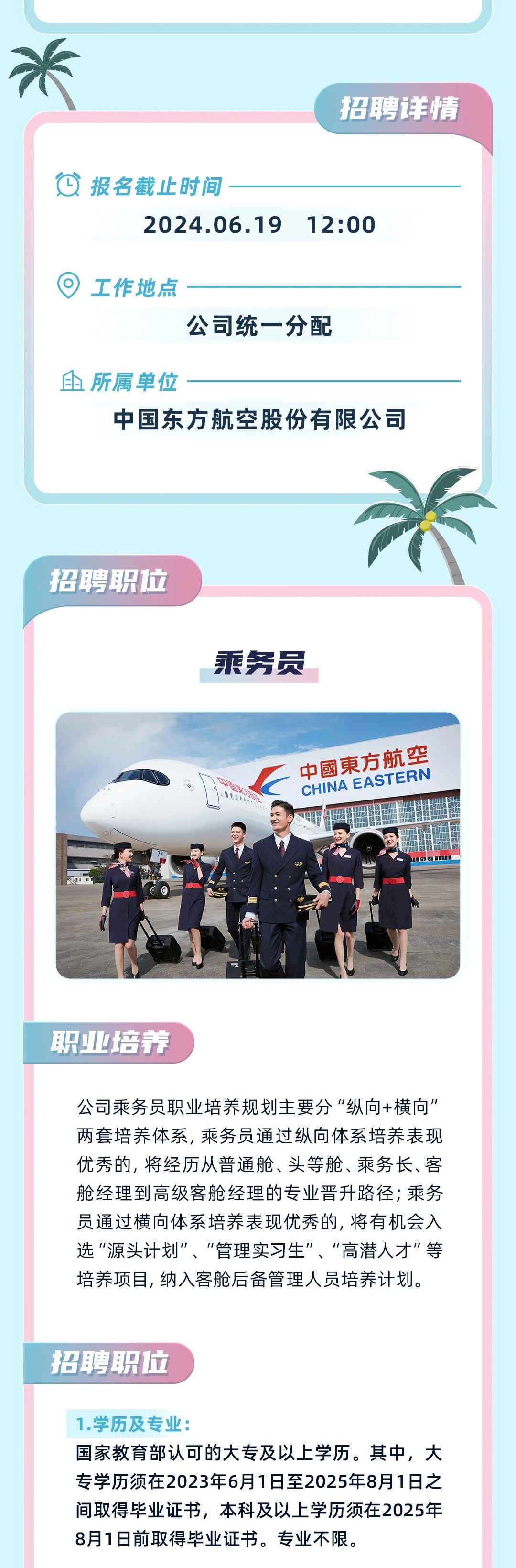 中國(guó)東方航空股份有限公司2024乘務(wù)員、航空安全員夏季社會(huì)招聘
