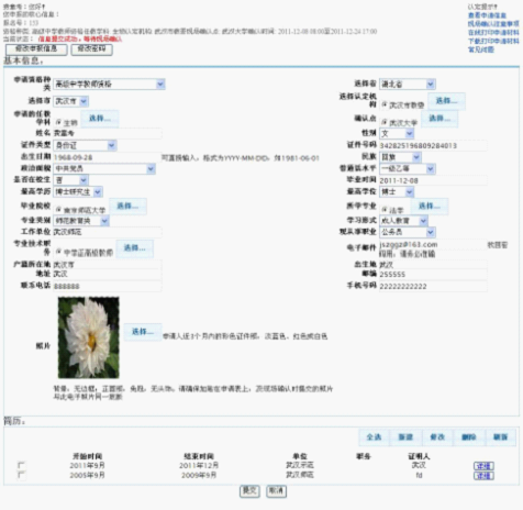 點擊“確定”,可以查看和修改填報的申請信息,頁面如下:
