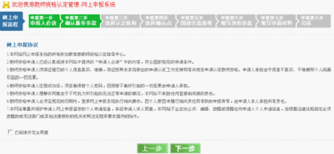 申請人選中“已閱讀并完全同意”網(wǎng)上申報協(xié)議才可點擊“下一步”按鈕進入申報第三步,否則給出提示。