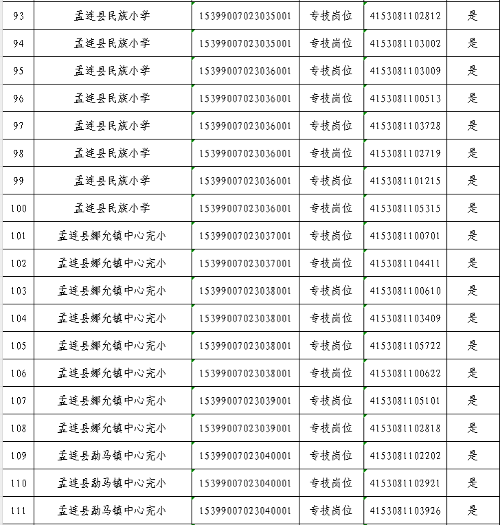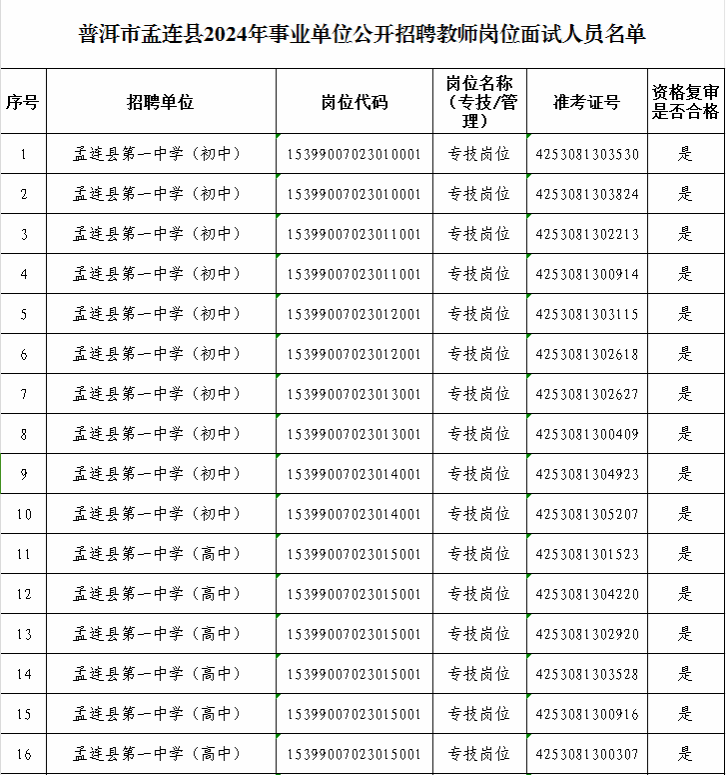 附件:普洱市孟連縣2024年事業(yè)單位公開招聘教師崗位面試人員名單