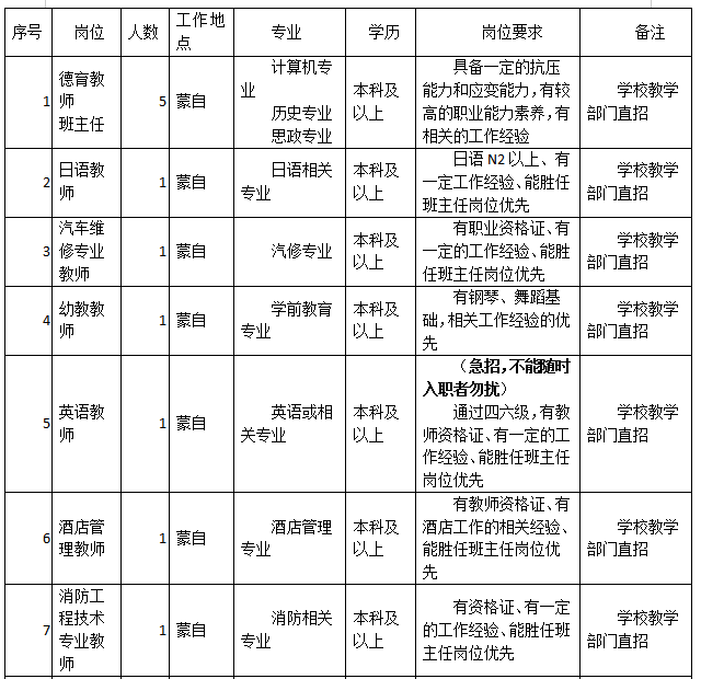 備注:以上崗位均為學(xué)校直招的教學(xué)崗位,非招生崗或其他崗位。面試合格后,入職參加培訓(xùn),合格后馬上上崗。