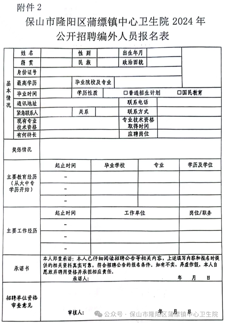 保山市隆陽區(qū)蒲縹鎮(zhèn)中心衛(wèi)生院2024年編外人員招聘公告