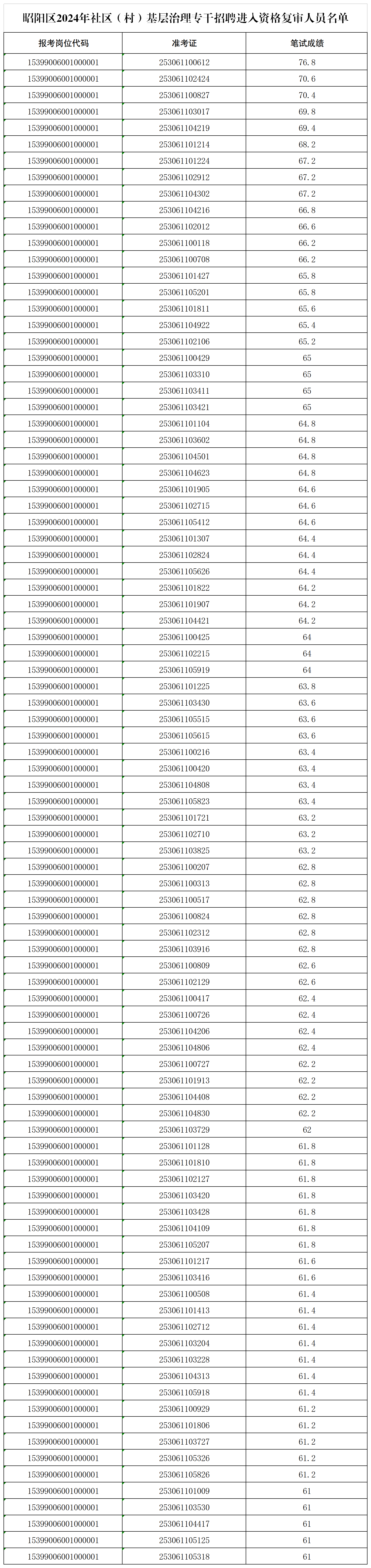 附件:昭陽(yáng)區(qū)2024年社區(qū)(村)基層治理專干招聘資格復(fù)審人員名單.xlsx
