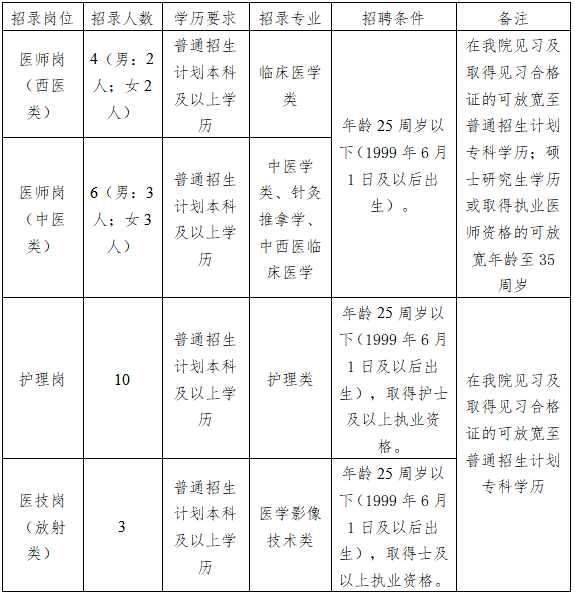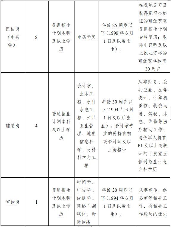 因醫(yī)院發(fā)展需要,現(xiàn)特面向社會公開招聘編制外人員?,F(xiàn)將有關(guān)事宜公告如下: