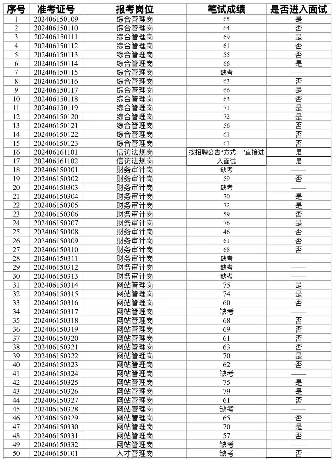 招聘聘用(任)人員筆試成績及進(jìn)入面試人員名單公告