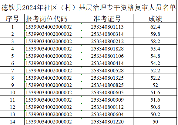 詳見(jiàn)附件《德欽縣2024年社區(qū)(村)基層治理專干資格復(fù)審人員名單》。