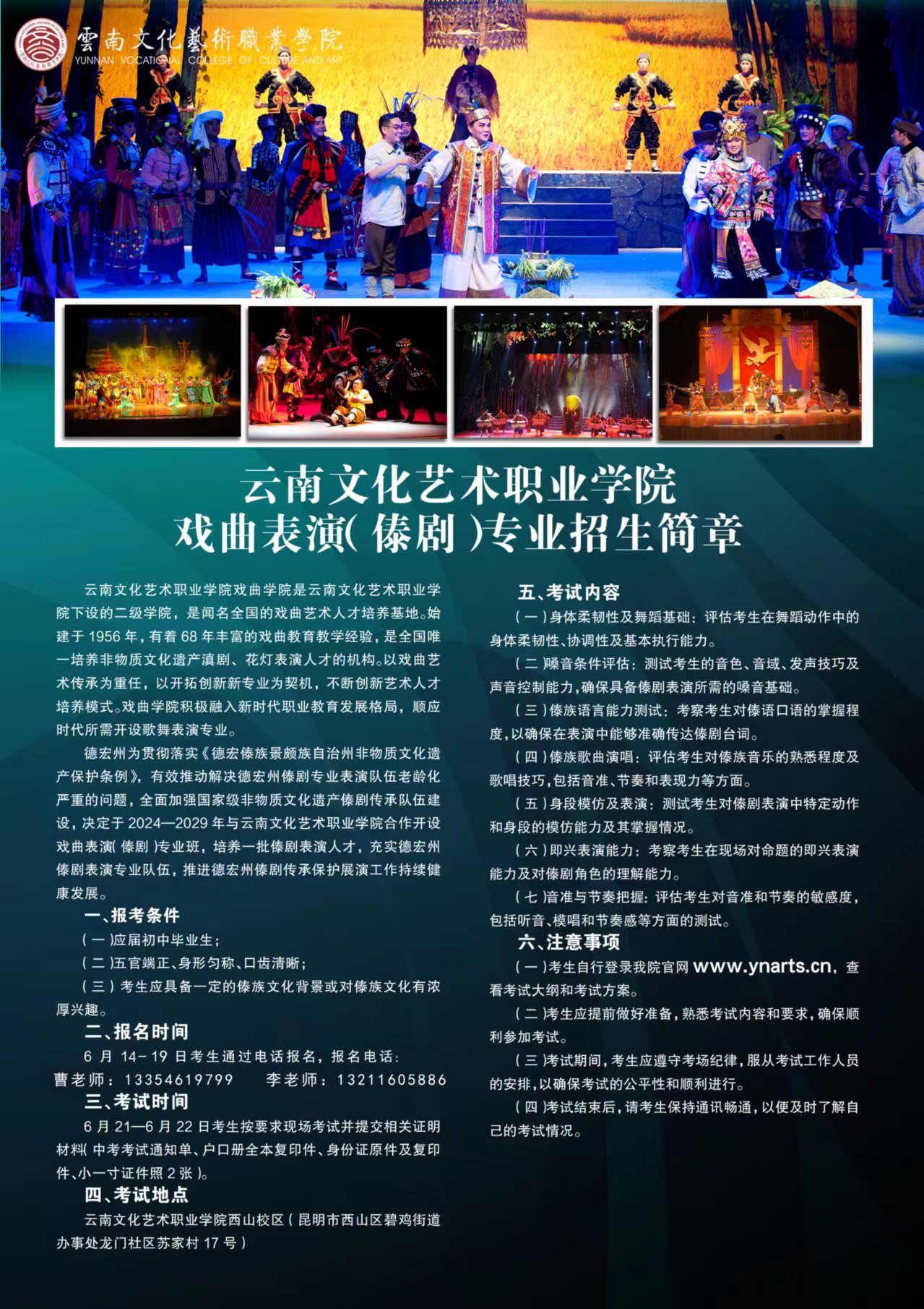 云南文化藝術職業(yè)學院2024年戲曲表演(傣劇)專業(yè)招生簡章
