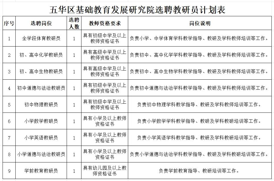 五華區(qū)基礎(chǔ)教育發(fā)展研究院選聘教研員公告