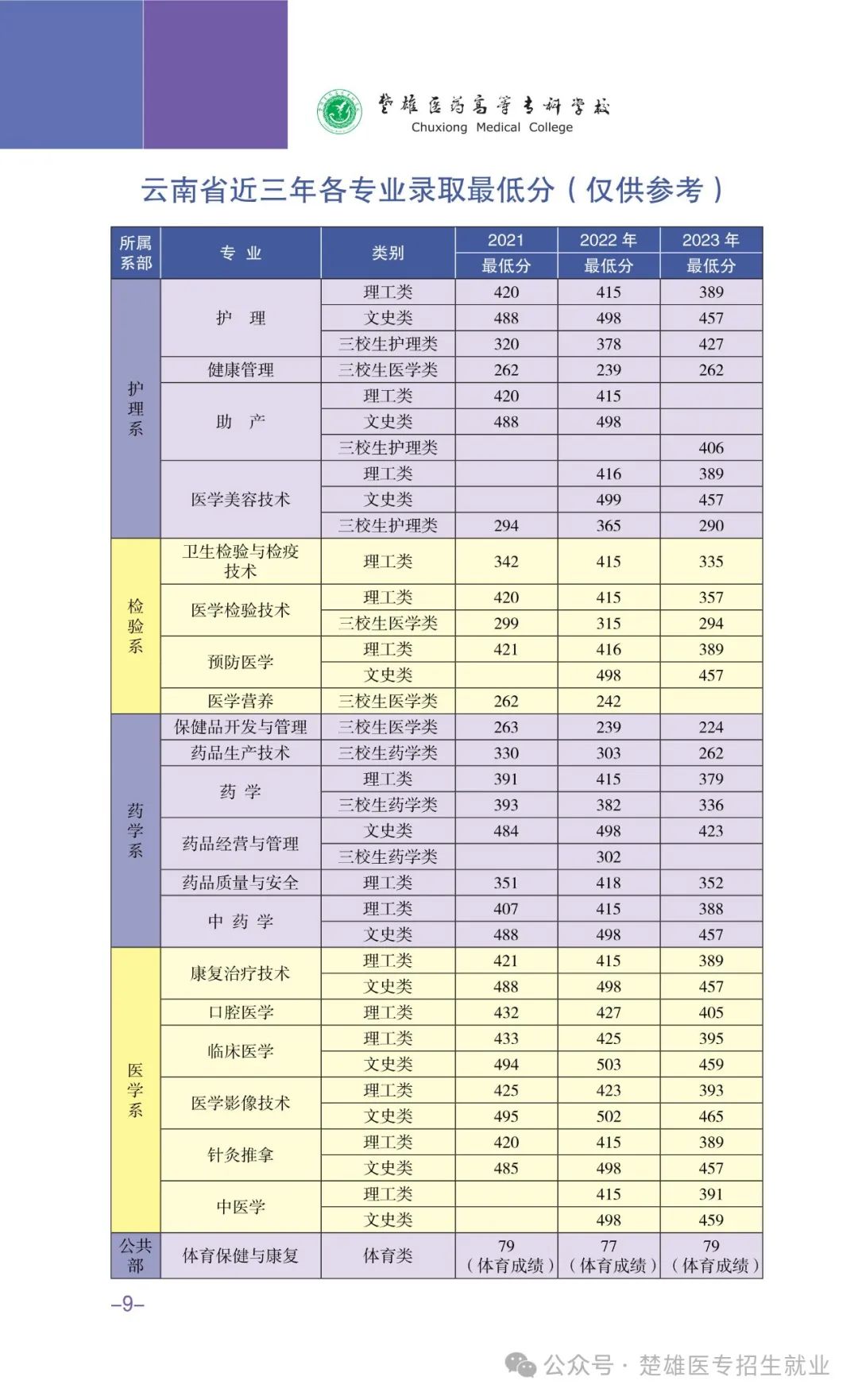 云南省近三年各專業(yè)錄取最低分(僅供參考)