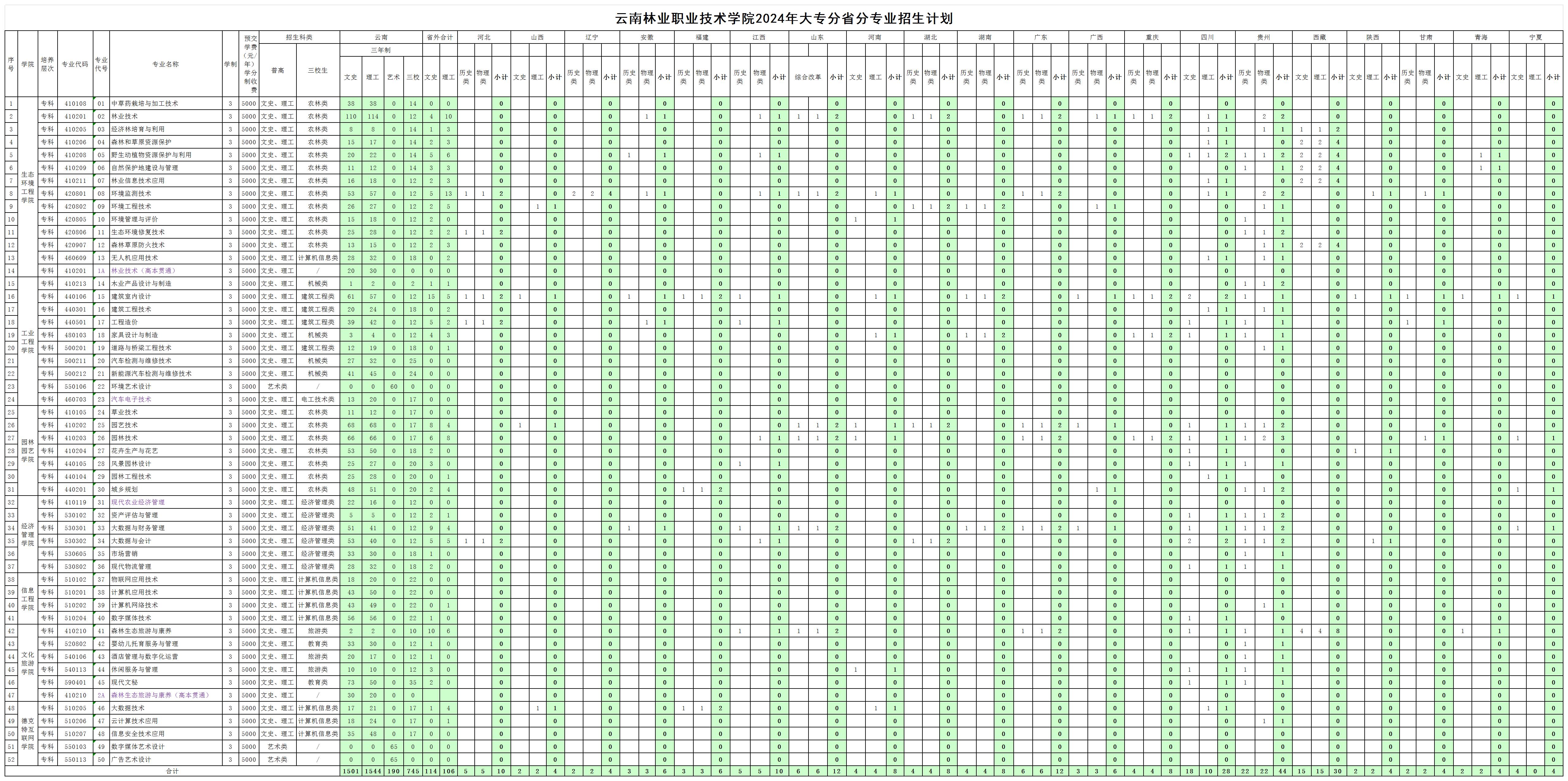 2024年大專(zhuān)分省分專(zhuān)業(yè)招生計(jì)劃表