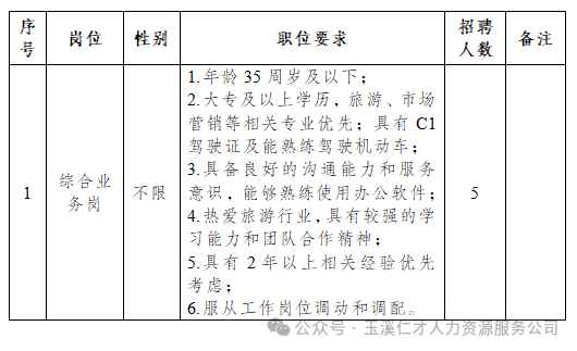 因公司發(fā)展需要,玉溪潤(rùn)礎(chǔ)文旅投資發(fā)展有限責(zé)任公司委托玉溪仁才人力資源服務(wù)有限責(zé)任公司面向社會(huì)公開(kāi)招聘勞務(wù)派遣工作人員5名,現(xiàn)將有關(guān)事宜公告如下: