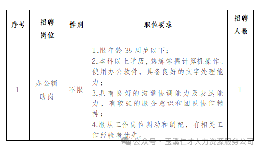 因公司發(fā)展需要,玉溪興誠會(huì)計(jì)服務(wù)有限公司委托玉溪仁才人力資源服務(wù)有限責(zé)任公司面向社會(huì)公開招聘勞務(wù)派遣工作人員1名,現(xiàn)將有關(guān)事宜公告如下: