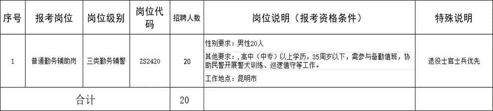 本次共招聘19人,單位為昆明市公安局各直屬部門(mén),崗位信息如下: