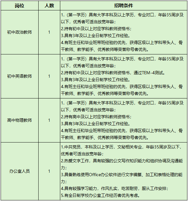 自2022年7月辦學(xué)以來,學(xué)校現(xiàn)有小學(xué)、初中、高中班級共21個(gè),師生1000余人,今年學(xué)校辦學(xué)規(guī)模將達(dá)40個(gè)班,師生近2000人。由于小學(xué)部擴(kuò)大招生規(guī)模,現(xiàn)面向社會公開招聘相關(guān)學(xué)科聘用制教師,招聘崗位及學(xué)科見下表。