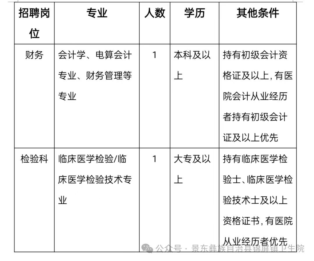 由景東彝族自治縣錦屏鎮(zhèn)衛(wèi)生院微信公眾號公開發(fā)布招聘公告,單位自行招聘。