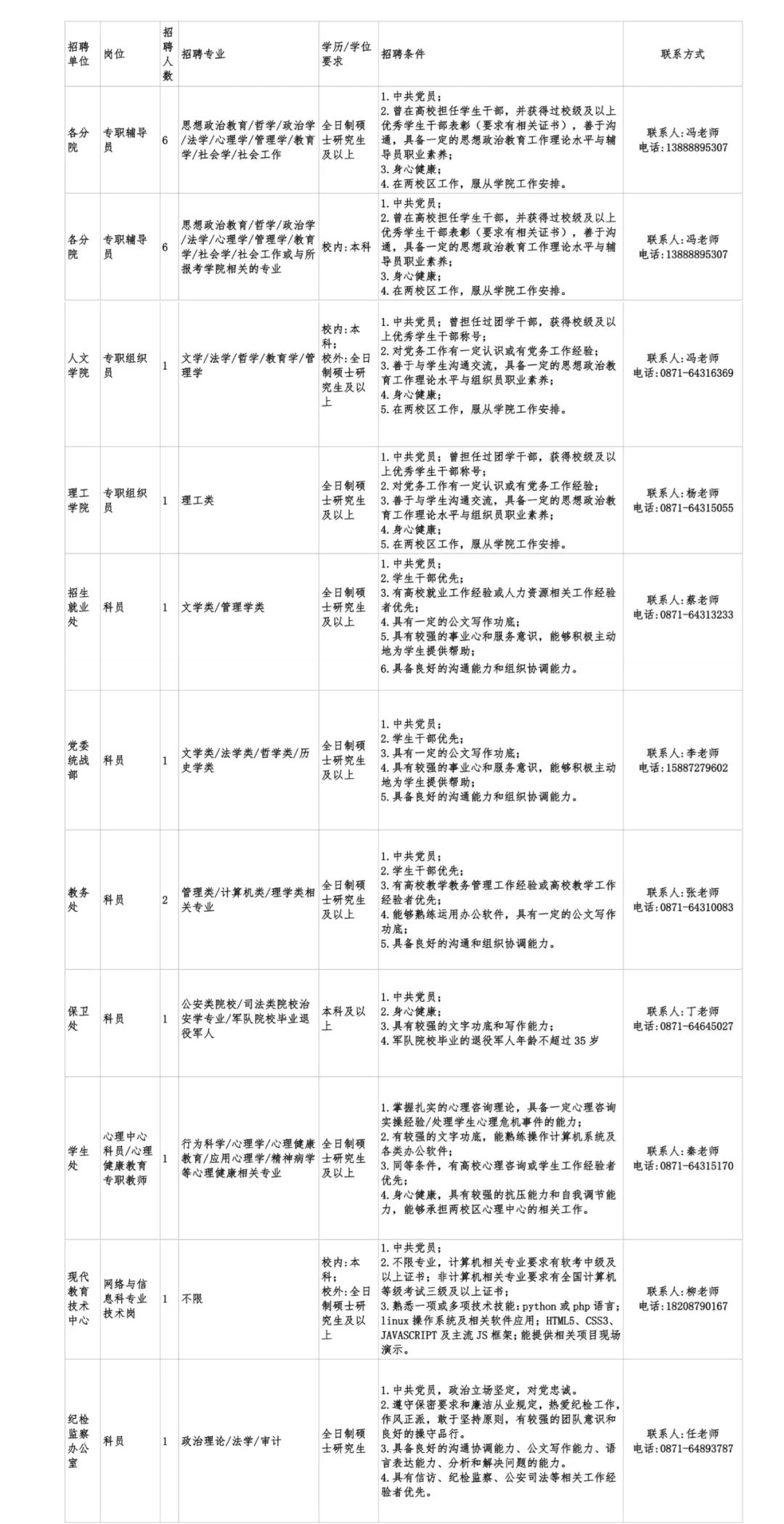 滇池學(xué)院2024年管理人員招聘計(jì)劃表