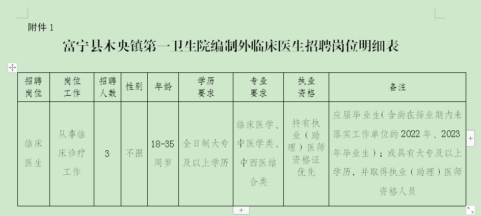 附件:富寧縣木央鎮(zhèn)第一衛(wèi)生院編制外臨床醫(yī)生招聘崗位明細(xì)表