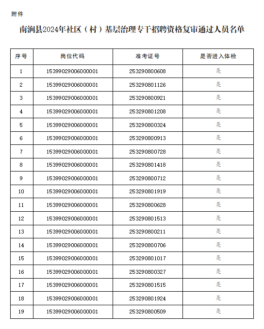 附件:南澗縣2024年社區(qū)(村)基層治理專干招聘資格復(fù)審?fù)ㄟ^人員名單