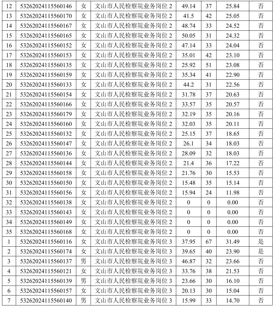一、此公告成績公示僅為報考文山市人民檢察院崗位成績,報考其它縣市院者請自行至相關縣市院官方賬號查看。