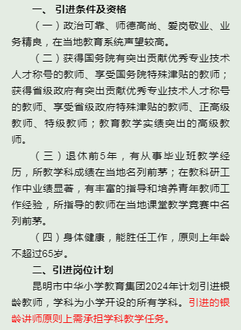 昆明市中華小學教育集團2024年引進銀齡講師公告