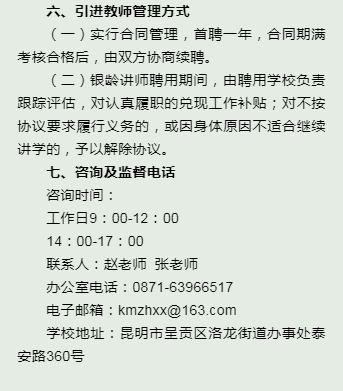 昆明市中華小學教育集團成立于2019年12月,以昆明市中華小學為龍頭學校,目前一校十址。依據(jù)《中共昆明市委辦公室 昆明市人民政府辦公室關于印發(fā)<昆明市銀齡講學三年行動計劃(2021—2023年)>的通知》(昆辦通〔2021〕6號),為深入推進昆明市中華小學教育集團的核心競爭力,提升教育集團的教育教學質(zhì)量,昆明市中華小學教育集團2024年計劃引進銀齡講師若干名,并常年引進銀齡講師?,F(xiàn)將有關事宜公告如下:
