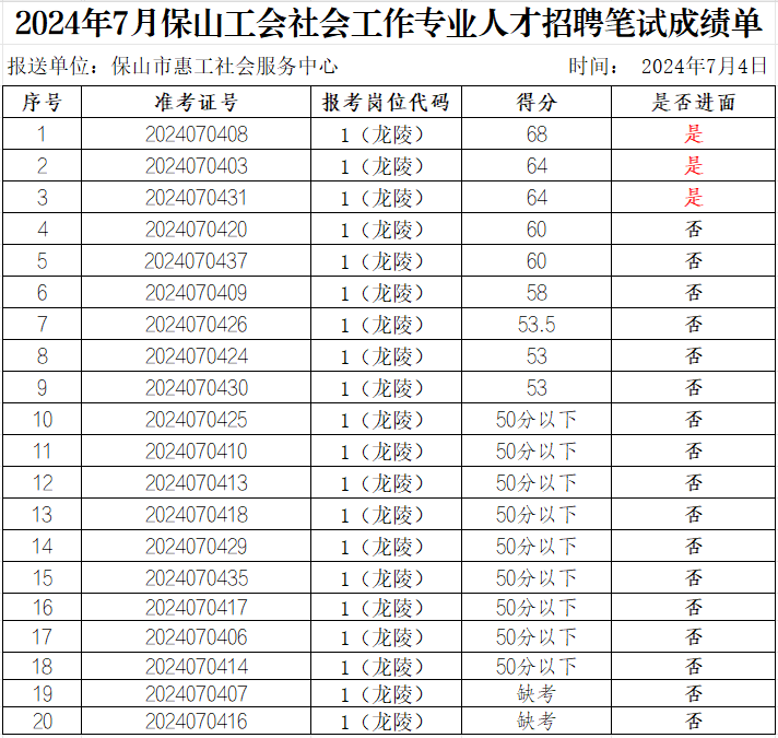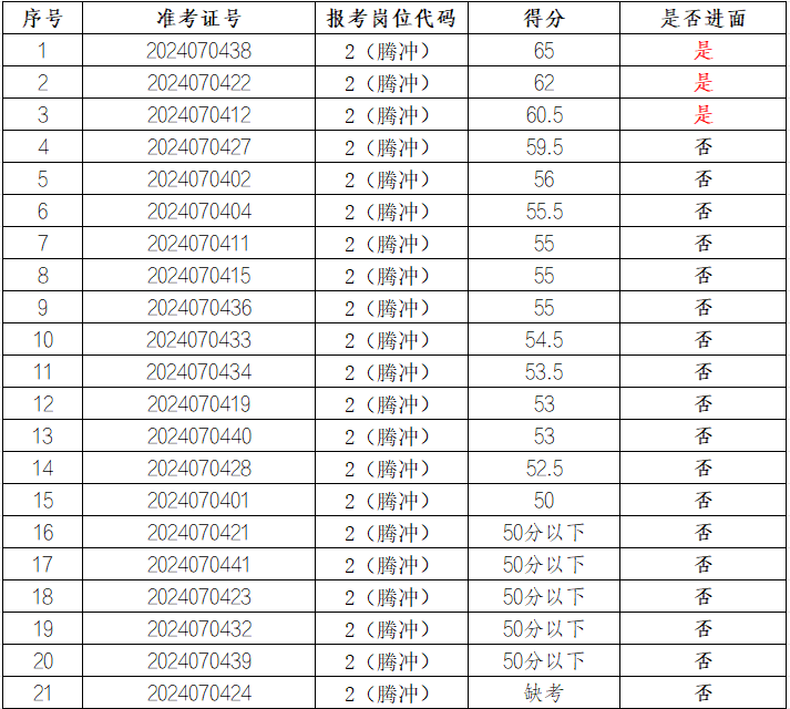 現(xiàn)將筆試成績(jī)及面試相關(guān)事宜公告如下: