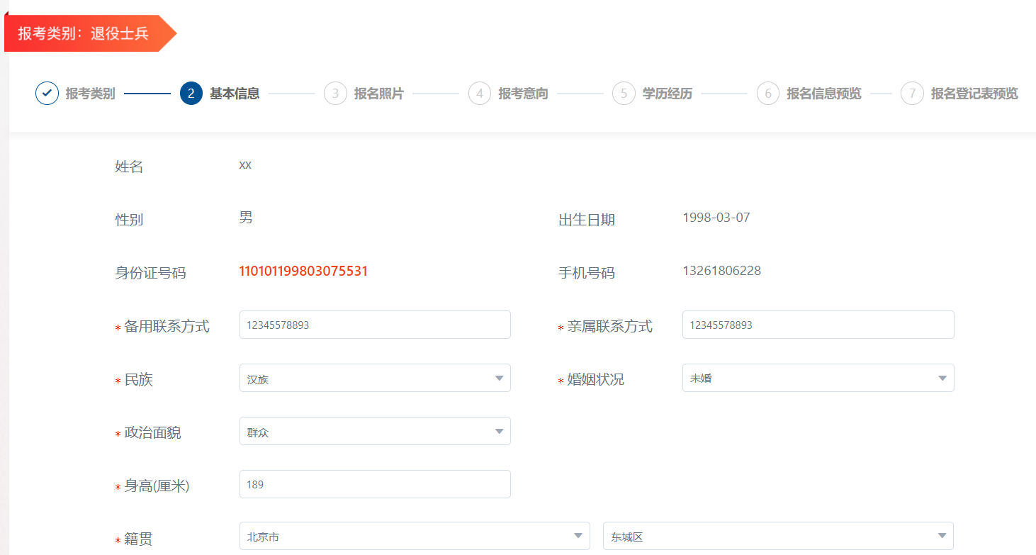 社會青年、高校應(yīng)屆畢業(yè)生基本信息填報頁