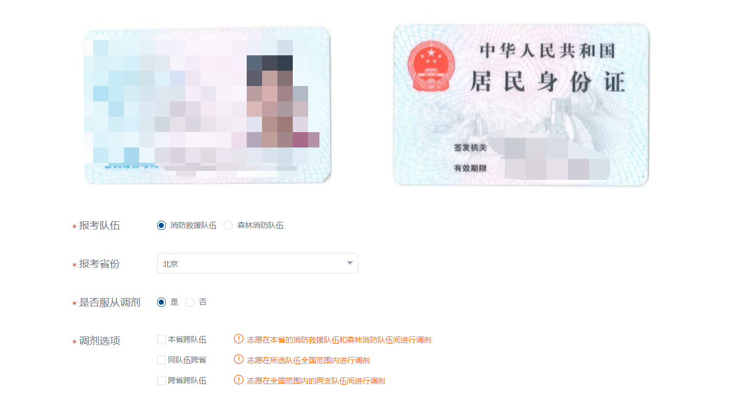 報考隊伍意向:報名對象選擇“消防救援隊伍”或“森林消防隊伍”。