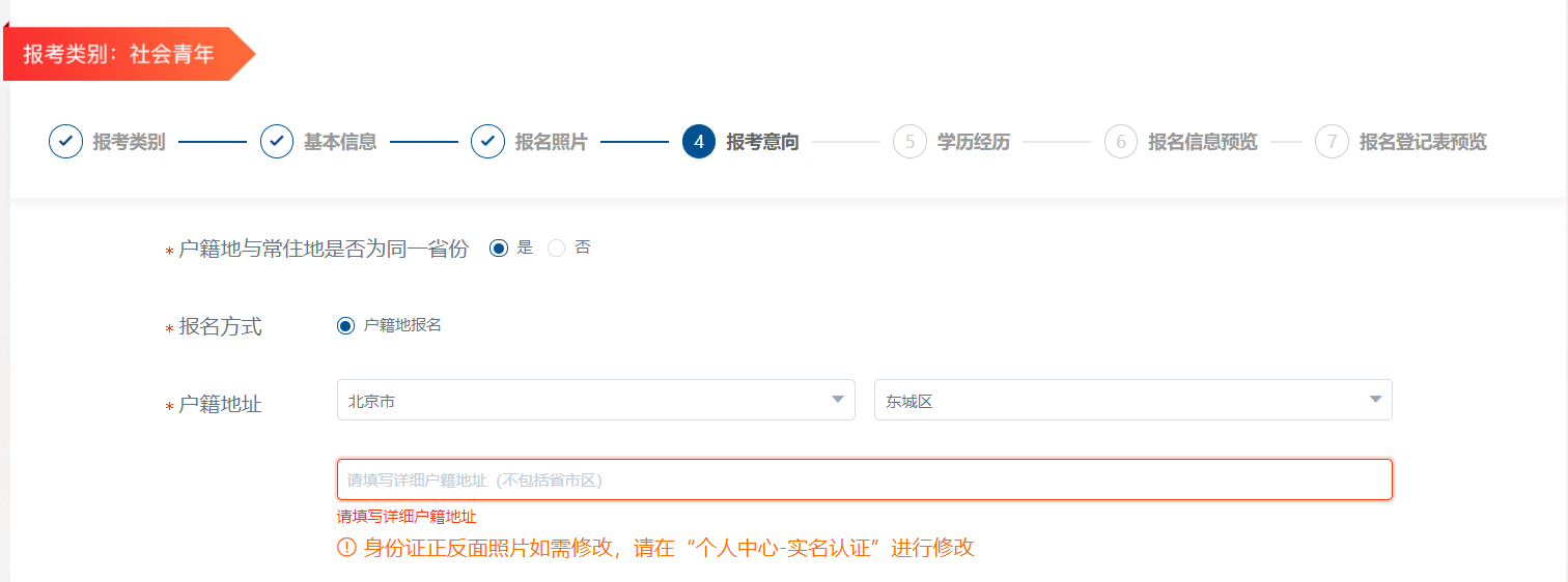 ② “按常住地報名”需填寫戶籍地地址及常住地地址、上傳居住證正、反面照片,僅限報考常住地省份。