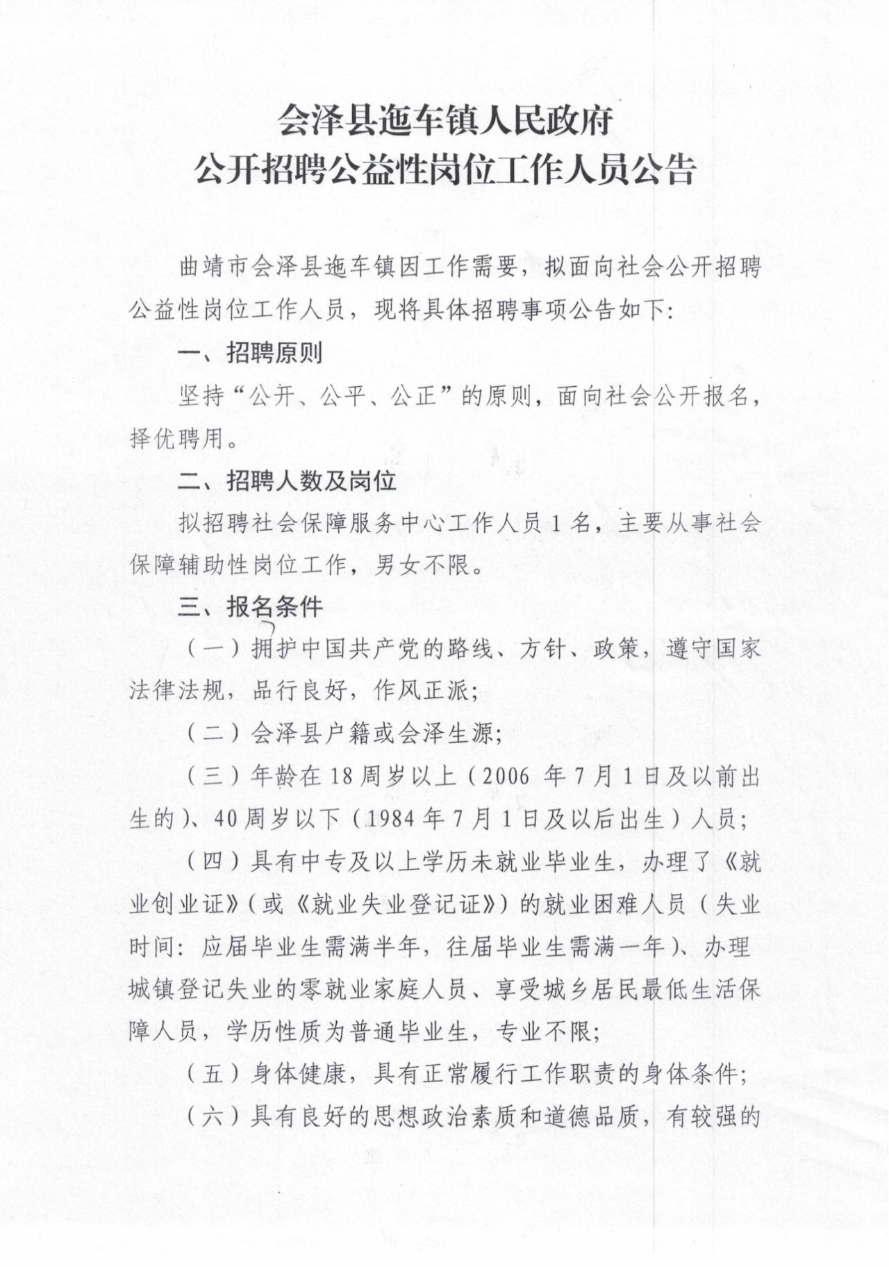 會澤縣迤車鎮(zhèn)人民政府公開招聘公益性崗位工作人員公告