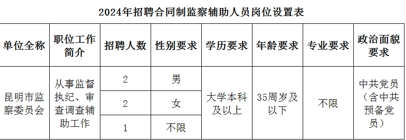 昆明市監(jiān)察委員會2024年招聘合同制監(jiān)察輔助人員公告