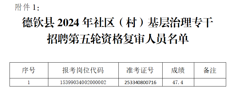 附件:1.《德欽縣2024年社區(qū)(村)基層治理專干招聘第五輪資格復(fù)審人員名單》