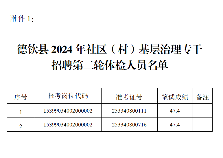 附件:1.《德欽縣2024年社區(qū)(村)基層治理專干招聘第二輪體檢人員名單》